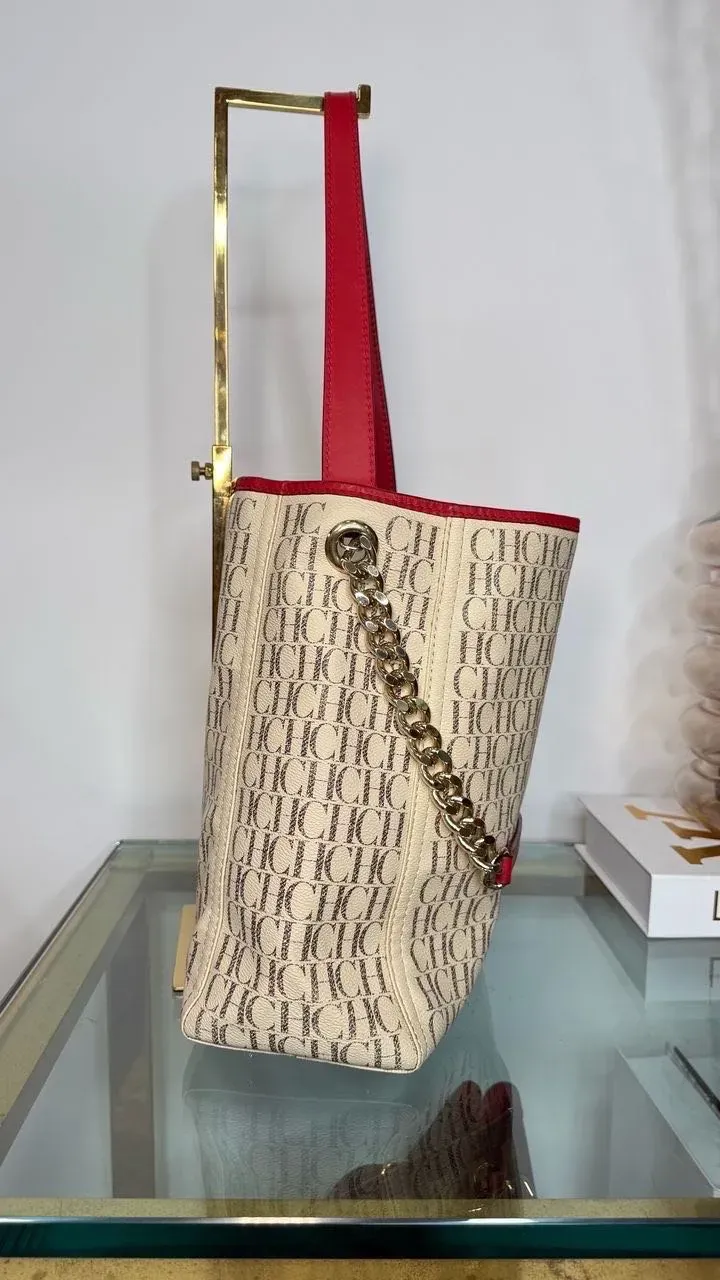Carolina Herrera Bolso Beige Y Rojo