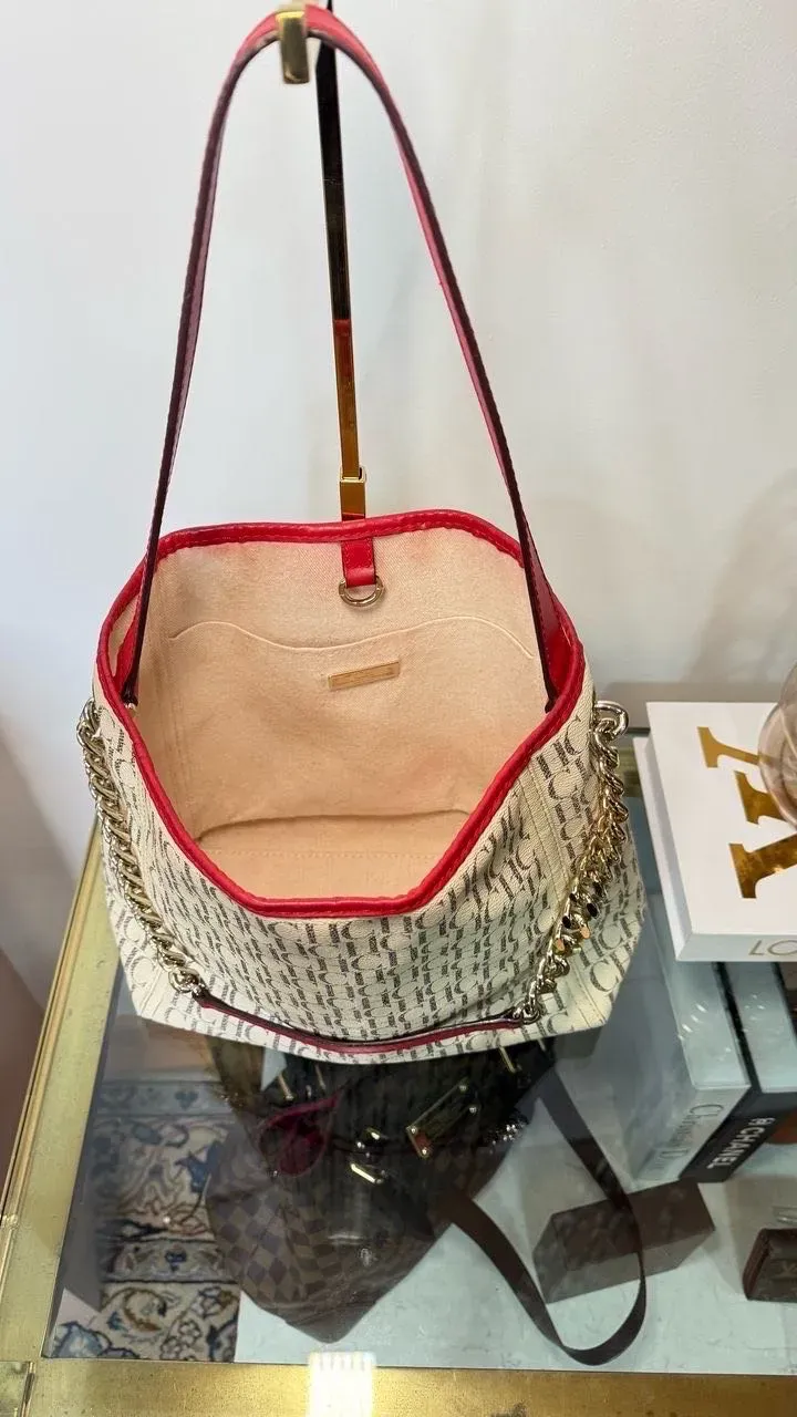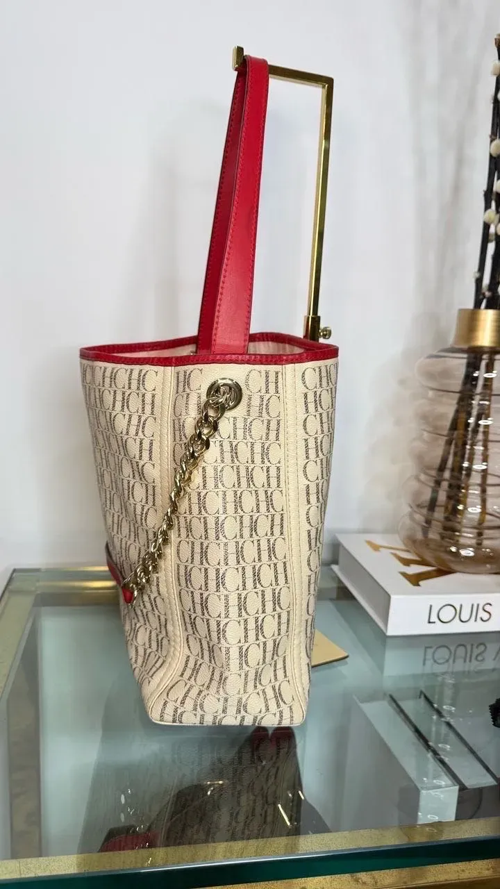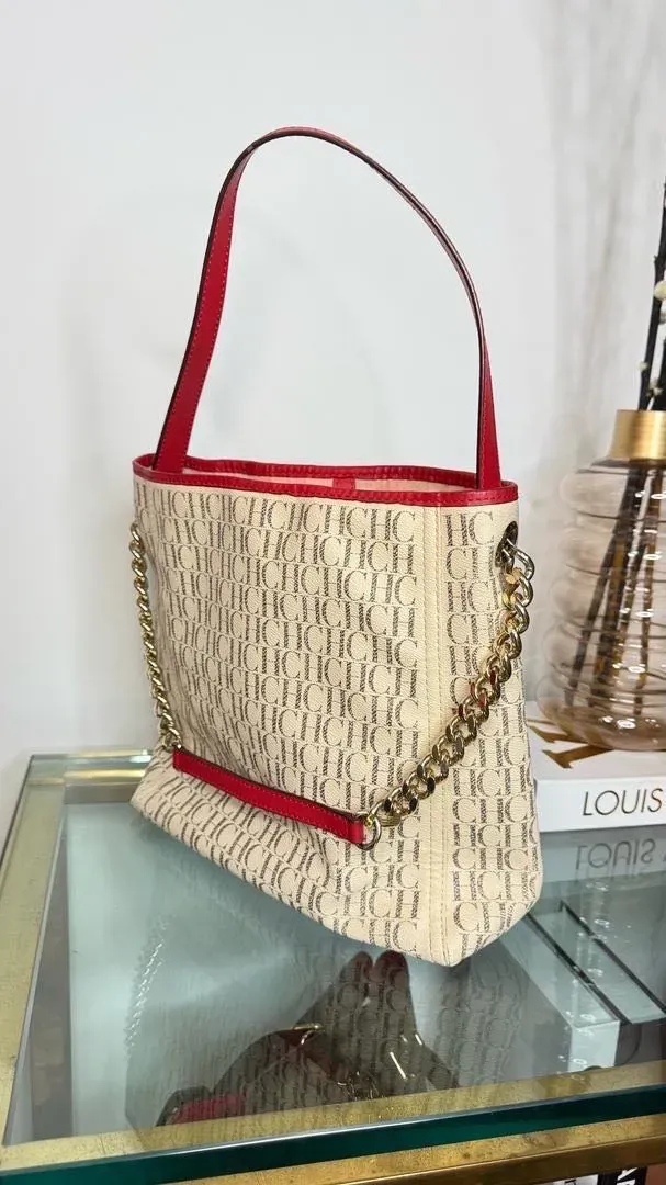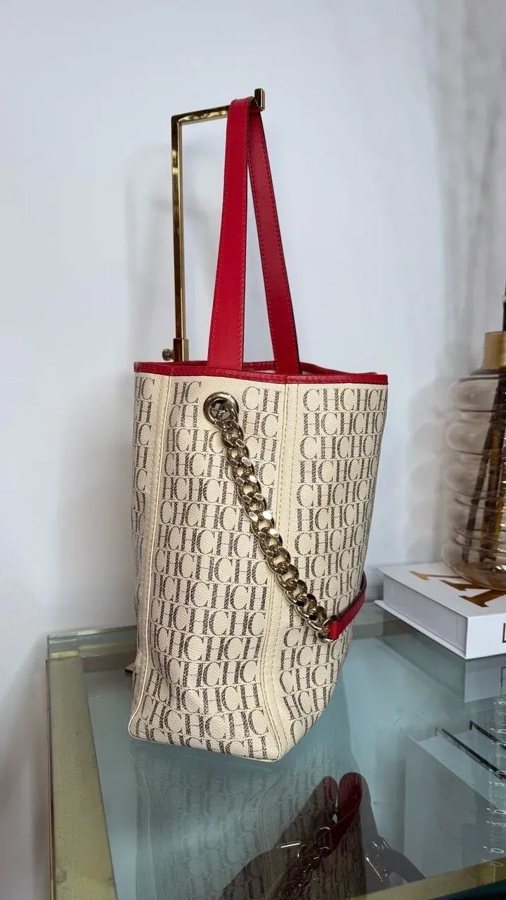 Este bolso Carolina Herrera en beige y rojo es el complemento perfecto para cualquier ocasión. Con su diseño elegante y sofisticado, este bolso añadirá un toque de estilo a tu outfit. Fabricado con materiales de alta calidad, es ideal para llevar tus pertenencias con estilo y comodidad.