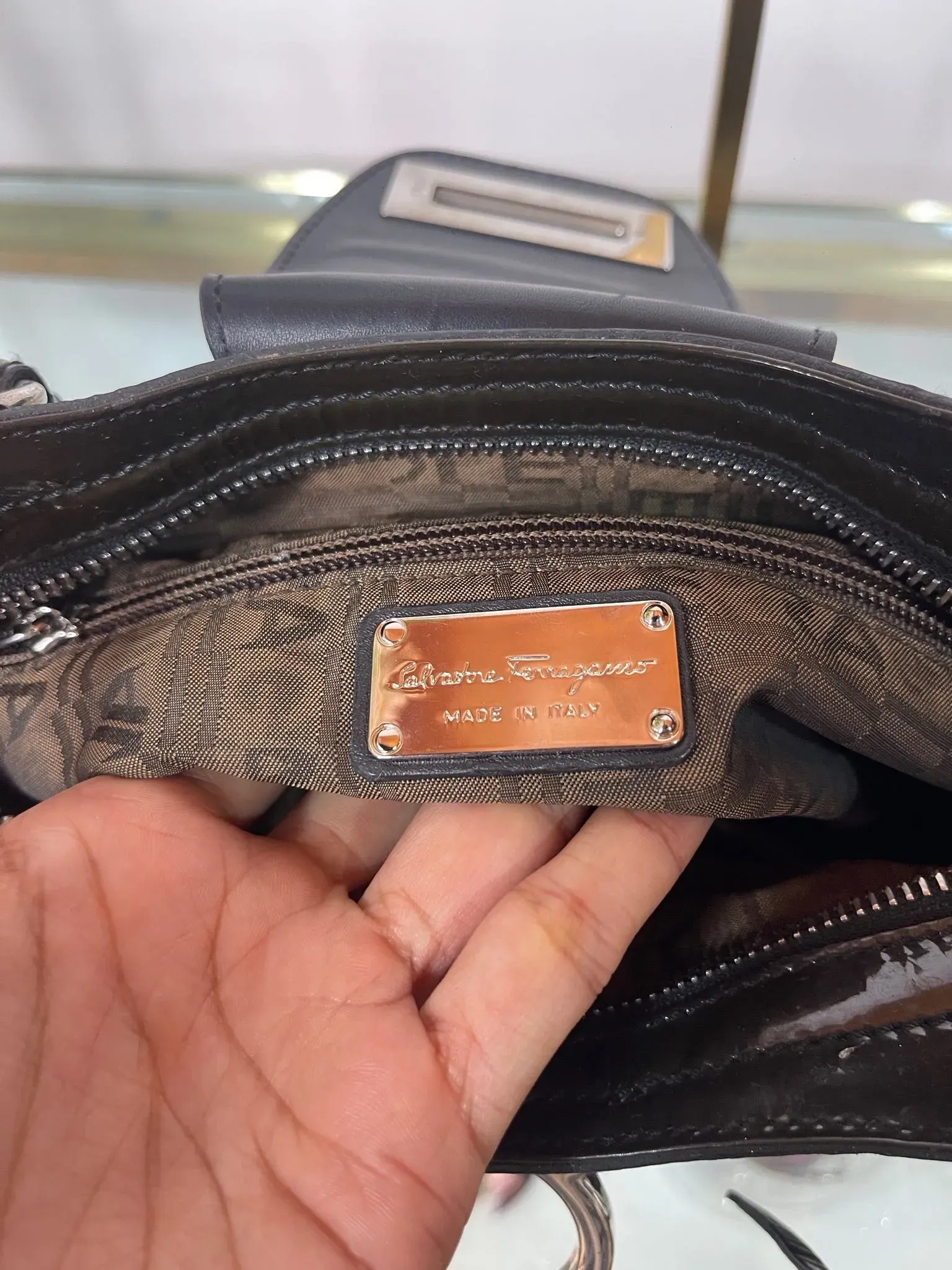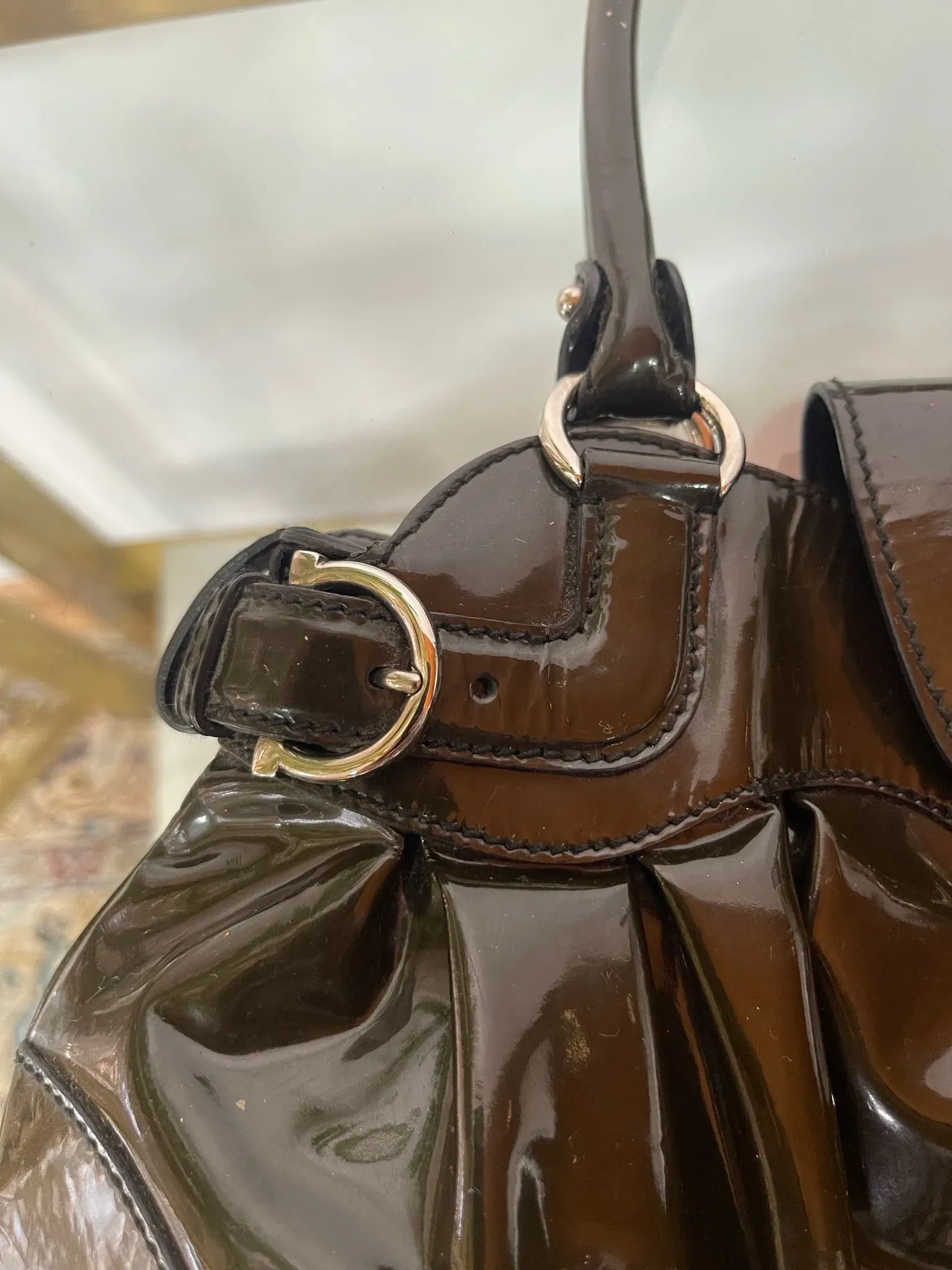 Cartera Salvatorre Ferragamo Patent Leather shoulder.