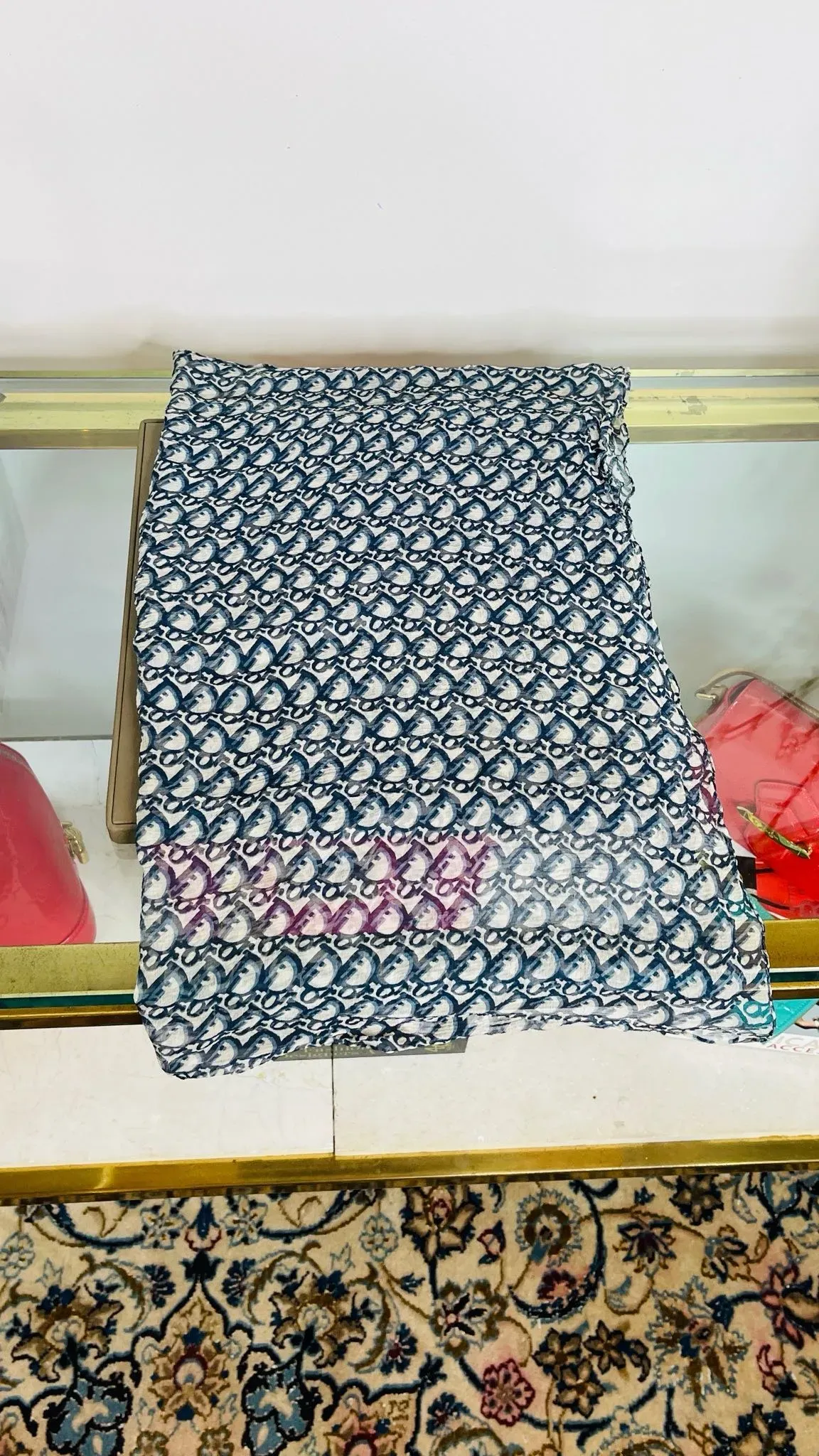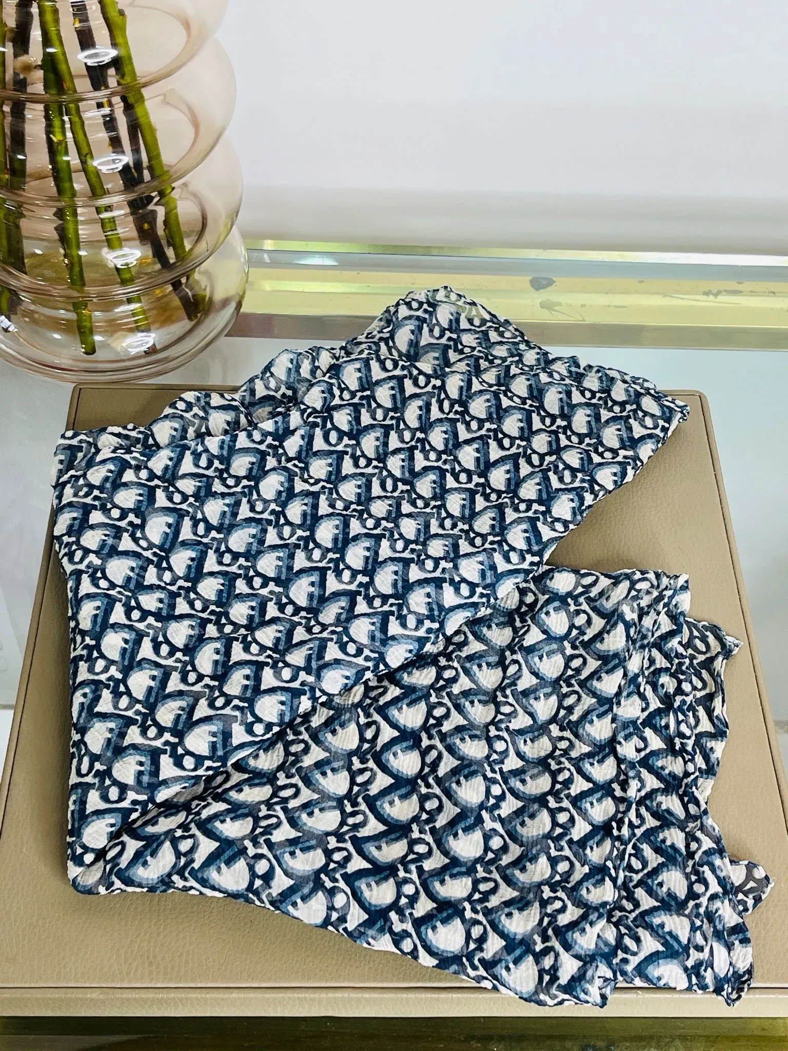 Christian Dior Pañuelo Dior de seda azul 75cm 68cm