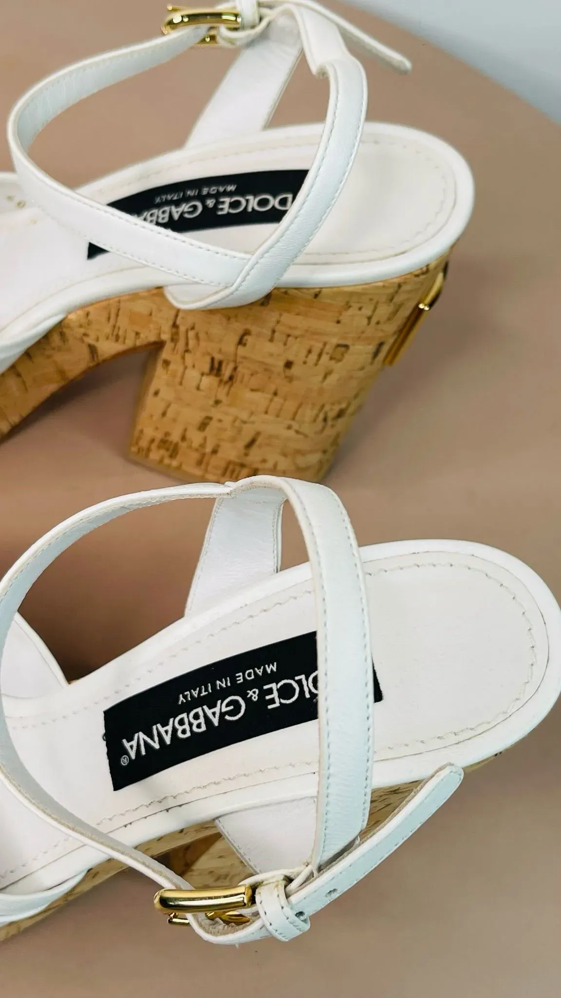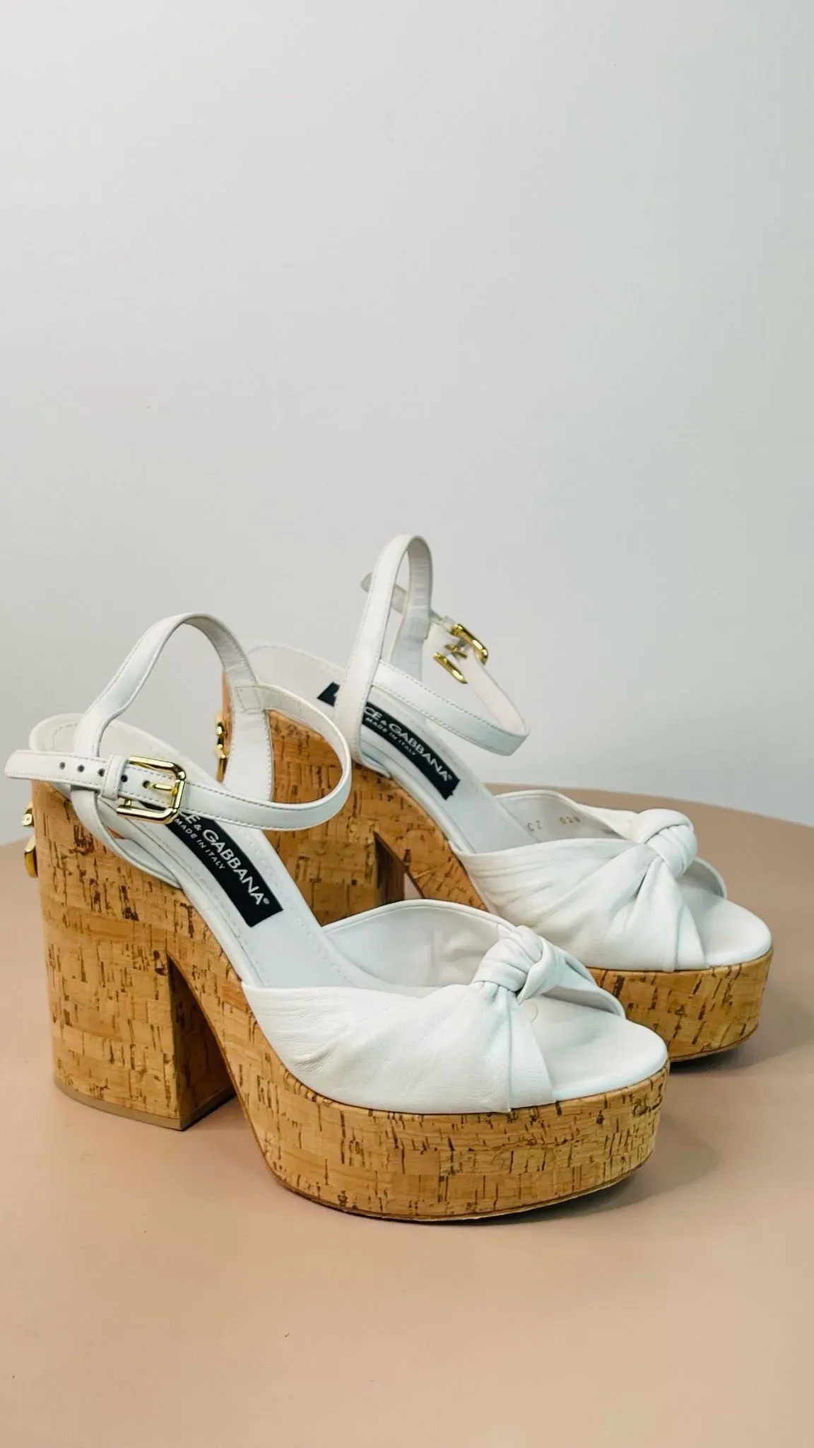 Sandalias de plataforma de cuero y corcho de Dolce Gabbana, perfectas para lucir elegante y a la moda. Ideales para combinar con cualquier outfit y destacar en cualquier ocasión. ¡Hazte con este calzado de lujo y eleva tu estilo al siguiente nivel!