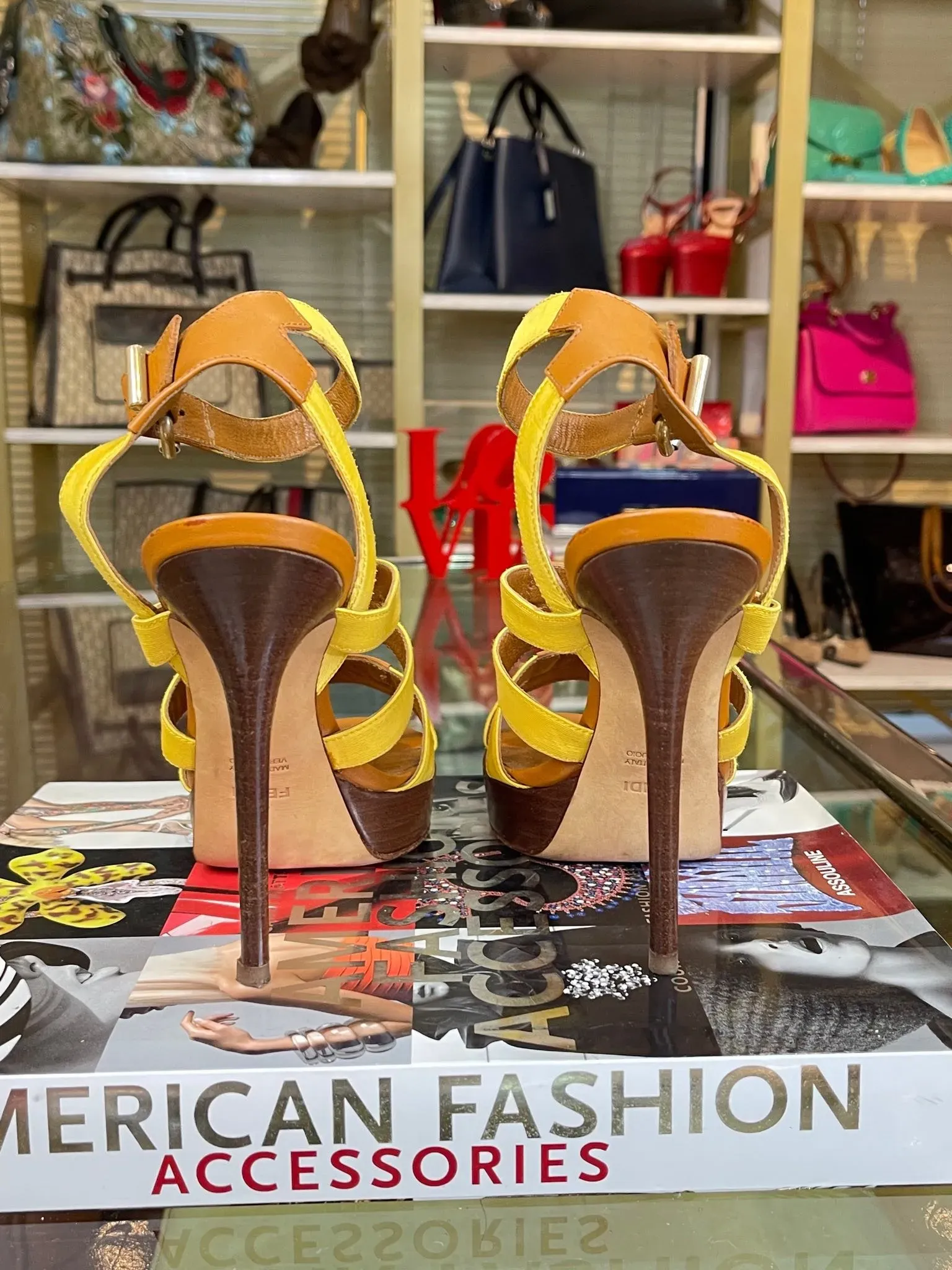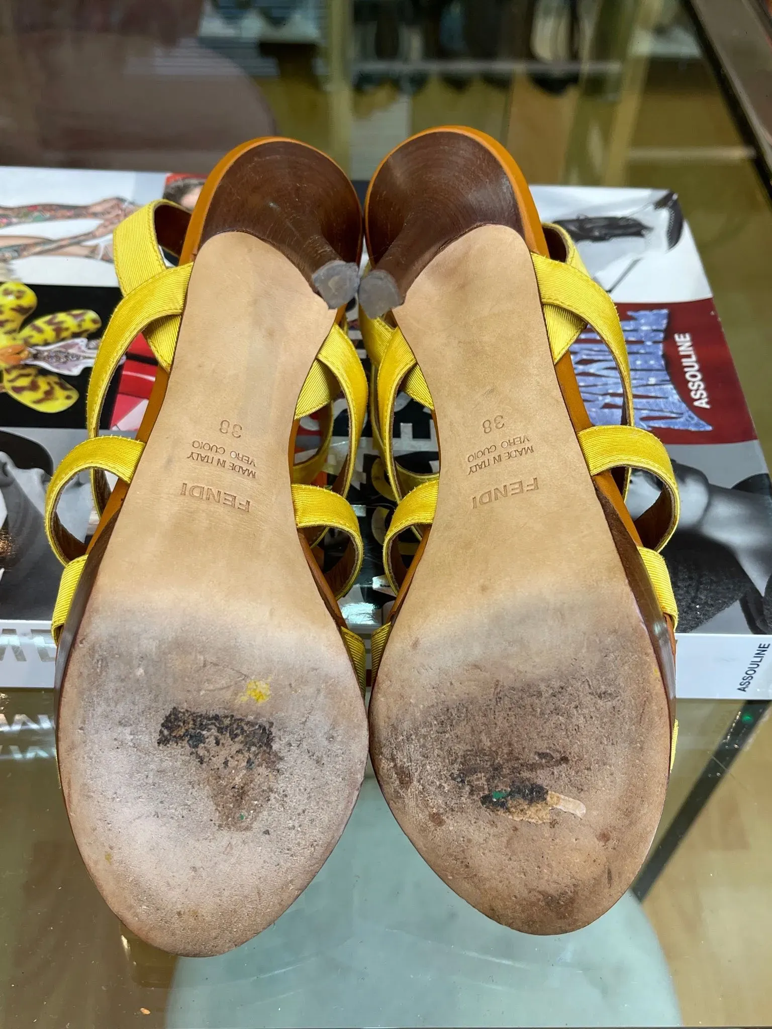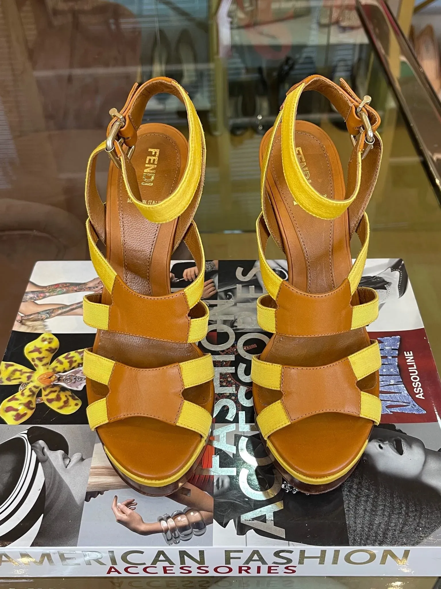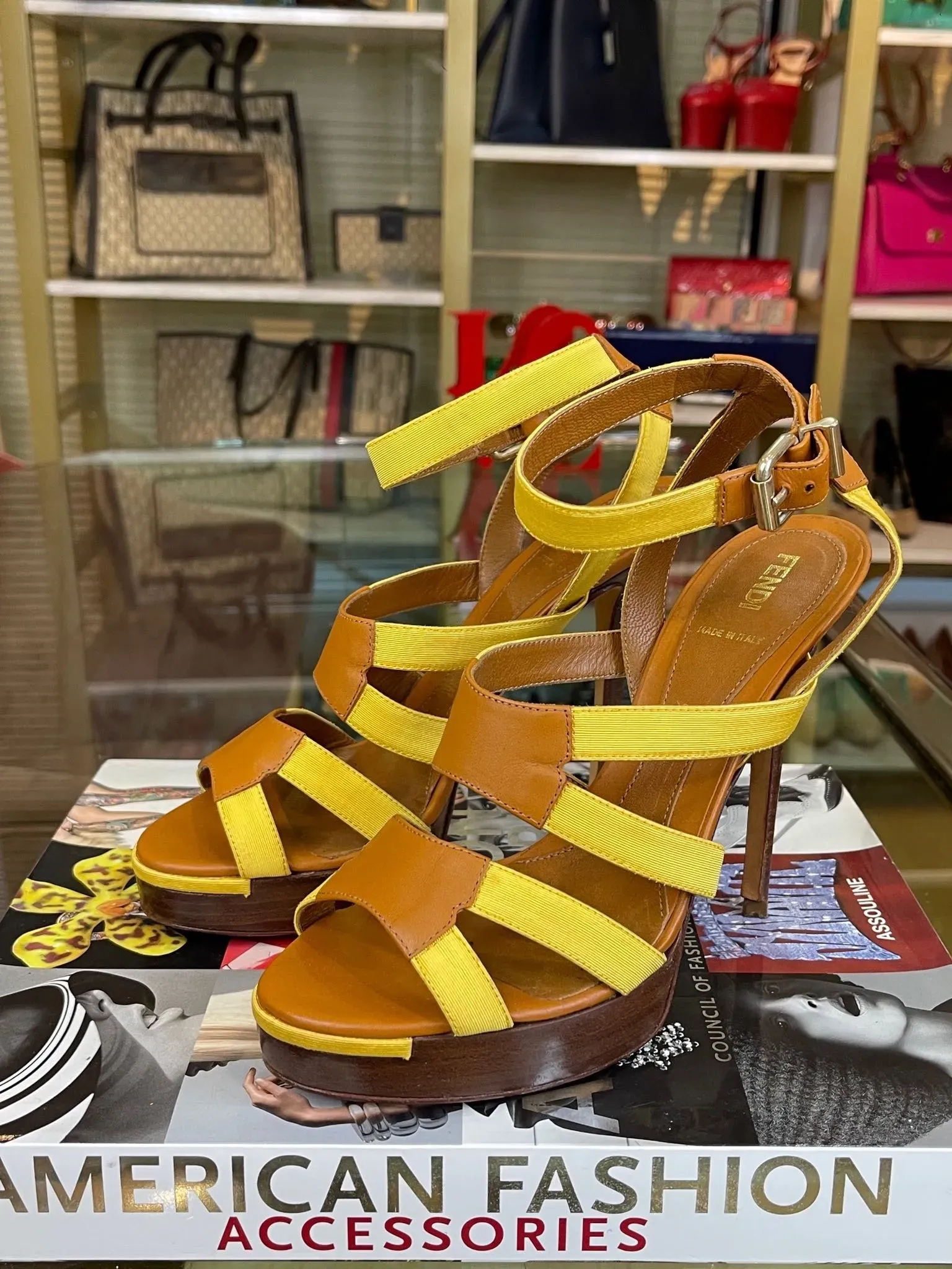Fendi Leather Colorblock Pattern Sandals 38