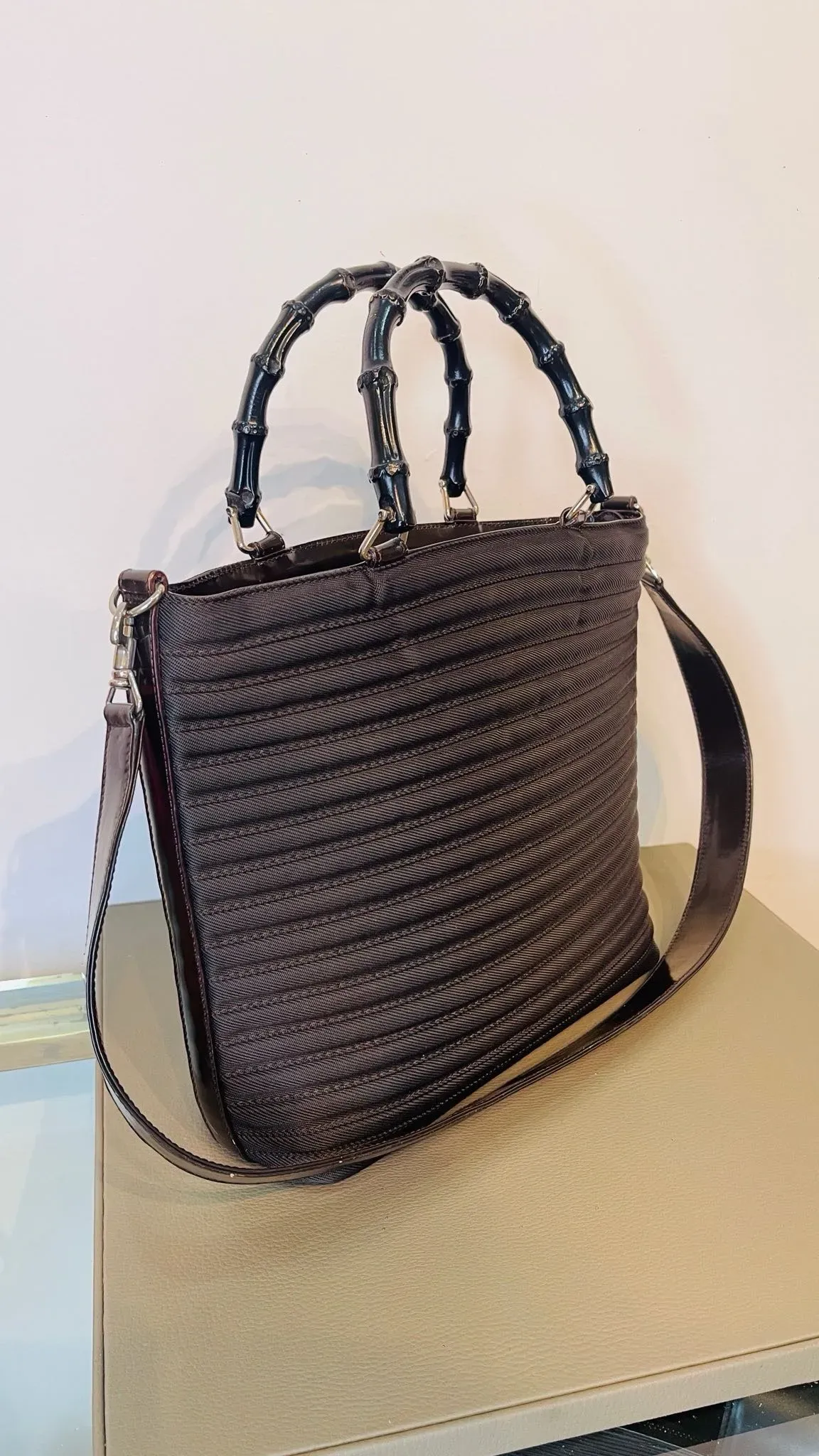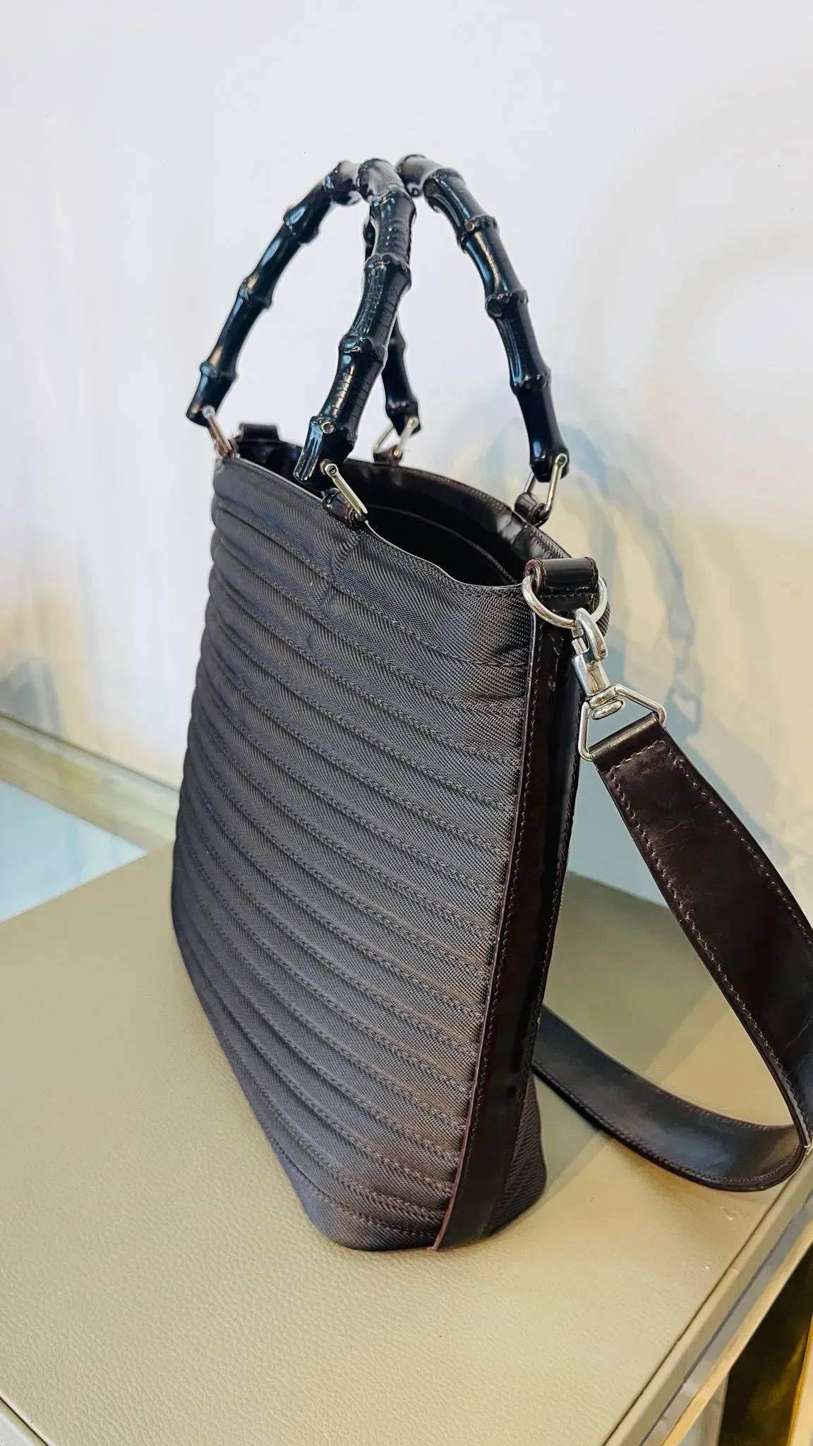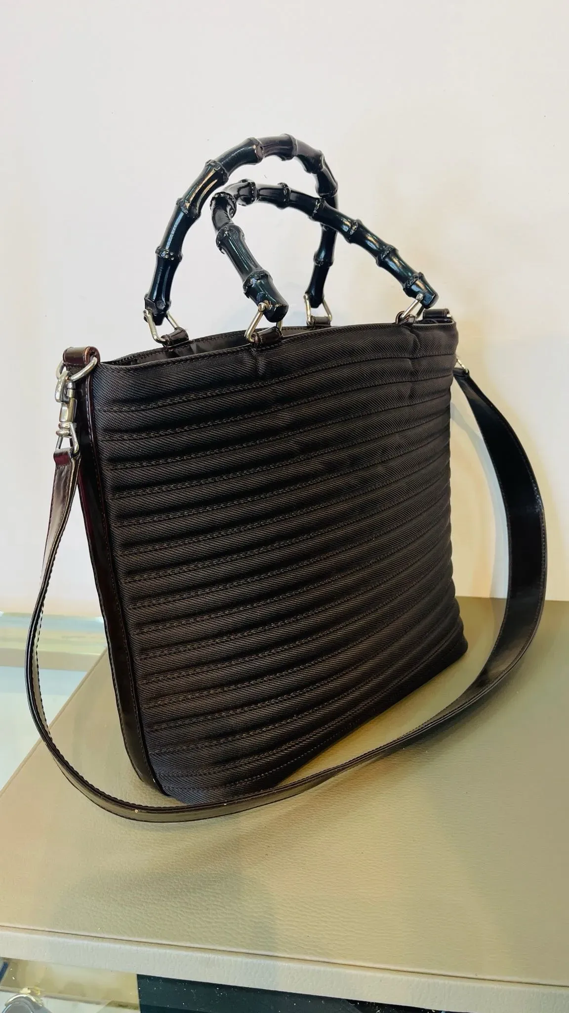 Bolso Gucci Vintage Bamboo Shopper de lona y cuero con asa superior, un elegante bolso tote GG que combina estilo y funcionalidad. Perfecto para lucir sofisticada y a la moda en cualquier ocasión. ¡Hazte con este icónico accesorio de lujo y eleva tu look al siguiente nivel!