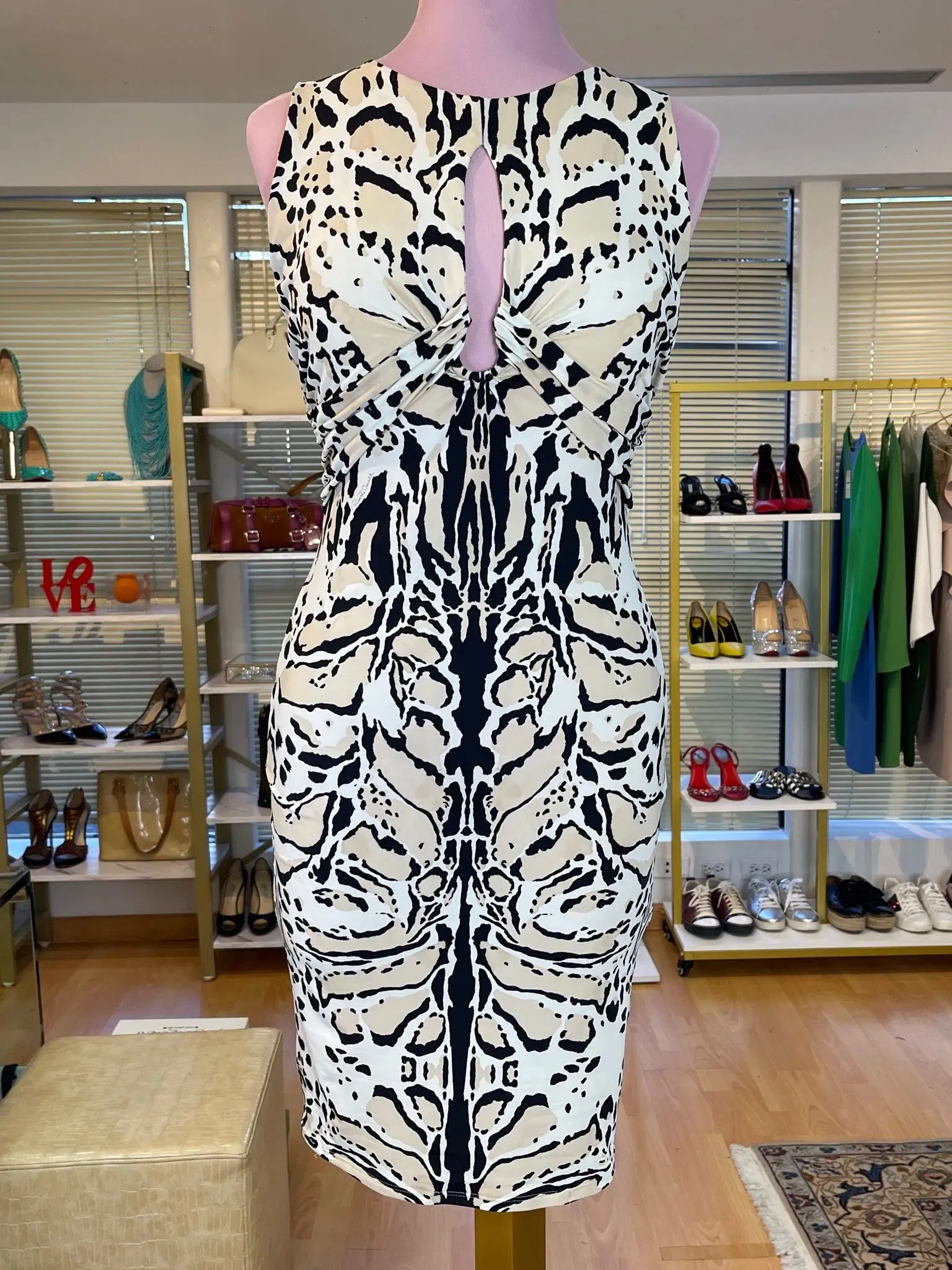 Viste con estilo y elegancia con este hermoso vestido mini estampado de Roberto Cavalli en talla 40. Perfecto para lucir sofisticada en cualquier ocasión. ¡Hazte con él y destaca tu belleza!